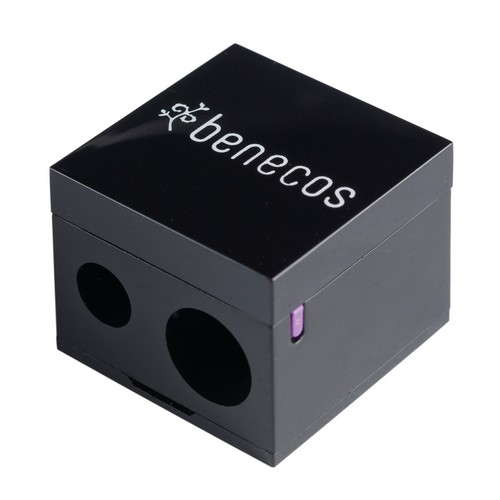 Der benecos Kosmetikspitzer ist perfekt auf die Minen der benecos Stifte abgestimmt. Mit seinen 2 unterschiedlichen Lochdurchmessern lassen sich auch etwas dickere Stifte wie die benecos Jumbo Lipsticks optimal spitzen. Wenn er mal verschmutzt ist, einfach mit dem integrierten Reinigungsspatel säubern.