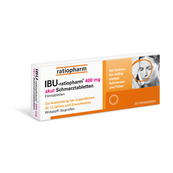 Die Ibu-ratiopharm 400mg akut-Tabletten wirken gegen Schmerzen und Fieber. Bei akuten Kopfschmerzen, entzündlich bedingten Schmerzen und Schwellungen verschafft das gut verträgliche Schmerzmittel basierend auf dem bewährten Wirkstoff Ibuprofen schnelle Hilfe.