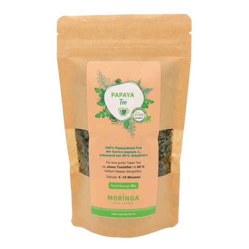 100% Papayablatt aus dem Anbau auf Kleinstplantagen, ohne Dünger oder Zusatzstoffe