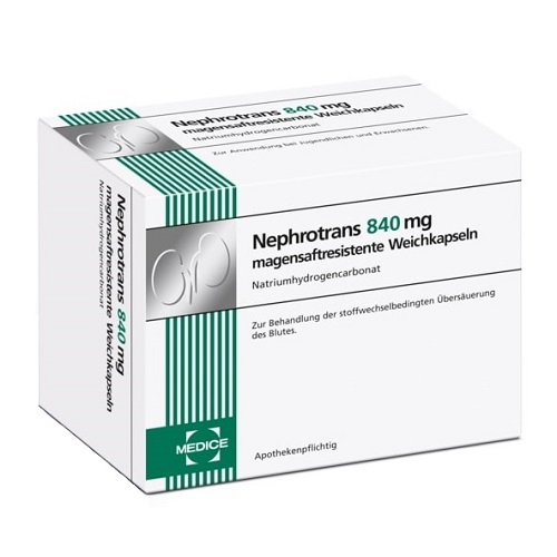 Nephrotrans 840 mg wird angewendet zur Behandlung einer stoffwechselbedingten Übersäuerung des Blutes (metabolische Azidose) und zur Erhaltungstherapie zur Vorbeugung des erneuten Auftretens einer metabolischen Azidose bei chronischer Niereninsuffizienz (eingeschränkter Nierenfunktion).