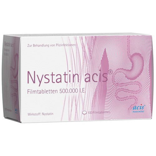 Wirkstoff: Nystatin, 500.000 I.E. Anwendungsgebiete: Zur topischen intestinalen Behandlung nachgewiesener nystatinempfindlicher Hefepilzinfektionen des Magen-Darm-Traktes, insbesondere als Folge einer Therapie mit Antibiotika, Zytostatika oder Corticoiden. Warnhinweise: Enthält Lactose, Ponceau 4R Aluminiumsalz, Azorubin Aluminiumsalz.