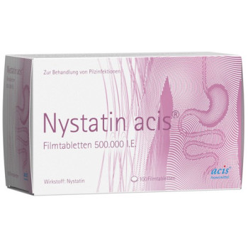 Nystatin acis® Filmtablette ist zur topischen intestinalen Behandlung nachgewiesener nystatinempfindlicher Hefepilzinfektionen des Magen-Darm-Traktes, insbesondere als Folge einer Therapie mit Antibiotika, Zytostatika oder Corticoiden.