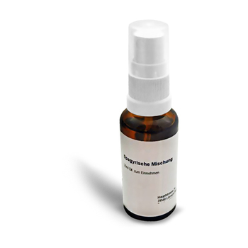 Die spagyrische Mischung wird für Sie individuell nach Ihren Vorgaben hergestellt. Es handelt sich somit bei diesem Angebot um ein Rezepturartikel. Bitte beachten Sie, dass Rezepturarzneimittel sowie individuelle Mischungen nicht retournierbar sind, da es sich um eine nicht vorgefertigte Ware handelt. Weiterführende Informationen finden Sie in unserer Widerrufsbelehrung.