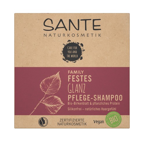 Das SANTE FAMILY Feste Glanz Pflege-Shampoo mit Bio-Birkenblatt für normales und glanzloses Haar spendet neue Geschmeidigkeit und Glanz. Die natürlich wirksame Pflegeformel in fester Form reinigt besonders mild und schäumt ergiebig. Die nachhaltige Alternative zu herkömmlichen Shampoos ohne Kompromisse – Deinem Haar und der Umwelt zuliebe. Mit rein natürlichem, zarten Kokosduft. Verträglichkeit dermatologisch getestet. Bio-Birkenblatt: Bekannt für seine pflegende & stärkende Wirkung für glänzendes Haar. Die perfekten Ergänzungen für noch mehr Pflege & Kämmbarkeit: SANTE FAMILY Glanz Spülung & 3 MIN Glanz Maske. Umweltfreundlich. Ressoucenschonend. Mit nachwachsenden Rohstoffen. Ideal auf Reisen & beim Sport. Karton-Material aus 100% recycelten Fasern. Umweltfreundliche, mineralölfreie Farben. 0% Platikverpacking.