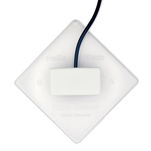 Die „Heiße Platte“ hat hauptsächlich zwei Funktionen. Die erste ist die, dass der Generator nicht mehr auf dem Gefäß sitzen muss, weil die Platte eine Verlängerung der Elektrodenanschlüsse darstellt. Damit ist gleichzeitig das Thema Feuchtigkeit am Generator selbst weg und dieser liegt entspannt neben dem Gefäß auf dem Tisch, wodurch er sich auch angenehmer bedienen lässt. Als Nebeneffekt wird der ganze Prozess im wahrsten Sinne transparenter.
