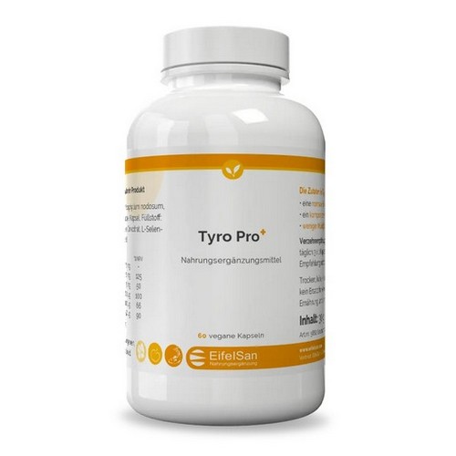L-Tyrosin vegan, Ascophyllum nodosum, Hydroxypropylmethylcellulose /Kapsel, Füllstoff: Cellulose, Nicotinamid Pulver, Zinkcitrat, L-Selenomethionin, Vitamin A-Acetat
