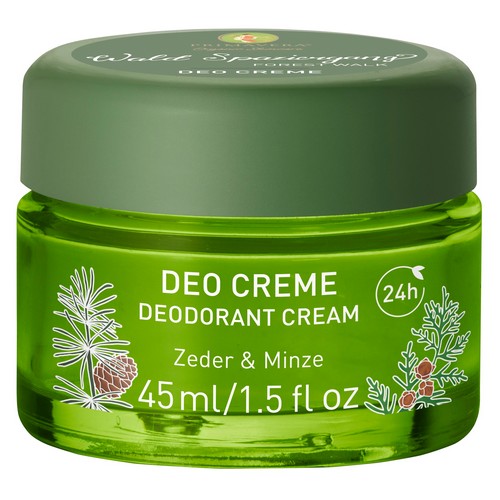Die vegane Deo Creme Waldspaziergang bietet duftenden 24-Stunden-Schutz ohne Aluminiumsalze. Sie desodoriert mit einer Pflanzenkraftkomposition aus Bio Kokosöl, Bio Sheabutter und Bio Benzoe Siam. Sie wirkt antibakteriell, geruchsabsorbierend und -neutralisierend, sowie antiirritativ und feuchtigkeitsbindend allein durch die Kraft naturreiner Inhaltsstoffe. Ihr waldig-frischer Duft aus Bio Zeder und Bio Minze wirkt belebend, und schenkt Kraft und Klarheit.