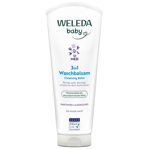 Sanft auf Körper, Gesicht und Haare auftragen, aufschäumen und gründlich abspülen. Für die optimale Pflegeroutine mit weiteren Produkten der Weleda baby MED Pflegeserie kombinieren.